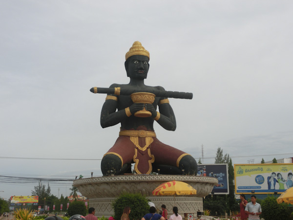 We made it to Battambang city center by noon and got a tuk tuk for 3000 riel ($.75) to our hostel: Here Be Dragons. The hostel is maybe 1.5 km from the center, about a 10mins walk. It is on the opposite side of the river and close to the statue of the stick-wielding farmer.