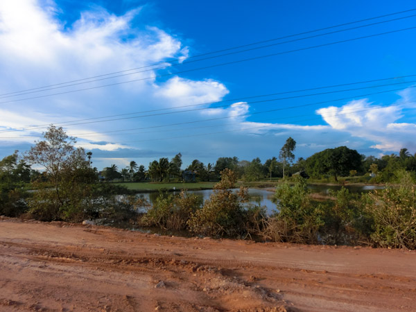 Back on the dirt road and back to Kampot. Our clothes were covered by a layer of dirt. Wearing clothes that you do not mind getting dirty might be a good idea if you intend to do the same thing we did.